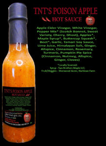 Fall in a bottle – wild apples and warm spices including cinnamon, allspice, and ginger. A touch of Vermont maple syrup meet the heat of Scotch Bonnet and Ghost peppers to craft this savory autumn delight. Spice level = 2 out of 5