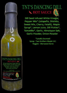 Bursting with homegrown charm, this Dancing Dill hot sauce blends our homemade dill pickles and garden-fresh tomatillos with Jalapeño, Fatalii, shishito, hot cherry, and sweet peppers. A kiss of garlic seals the deal for a flavor that’s as downright lovable as it gets. Spice level = 1 out of 5