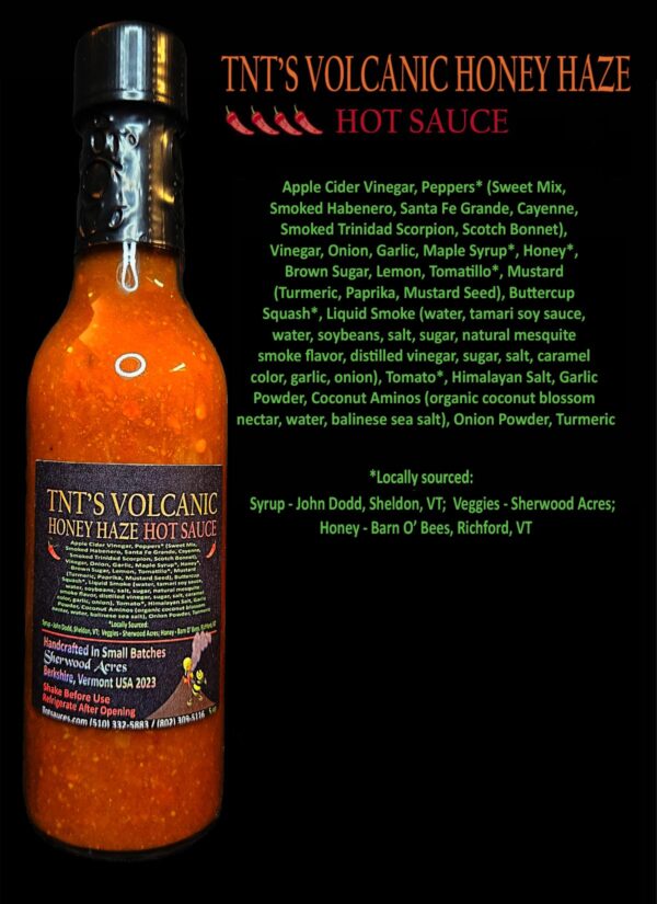 . We tend to the trees and they (sometimes) allow us to pick their luscious fruits. A dash of cinnamon, nutmeg and ginger completes the savory flavor of this mesmerizing sauce. Similar to a HOT apple pie filling, if the pie was infused with fiery rays of sunshine. Heat comes from scotch bonnet and ghost peppers. To top the cake, you’ll taste the sweetness only Mother Nature can provide, aka maple syrup.