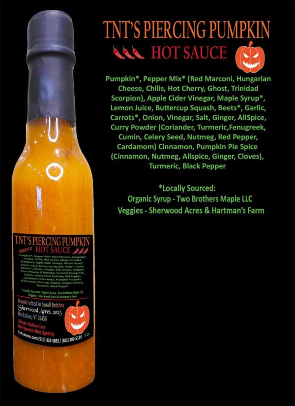 . We tend to the trees and they (sometimes) allow us to harvest their luscious fruits. A dash of cinnamon, nutmeg and ginger completes the savory flavor of this mesmerizing sauce. Similar to a HOT apple pie filling, if the pie was infused with sparks of heat from scotch bonnet, cherry peppers, and ghost peppers. To top the cake, you’ll taste the sweetness only Mother Nature can provide, aka homegrown sweet peppers and maple syrup.